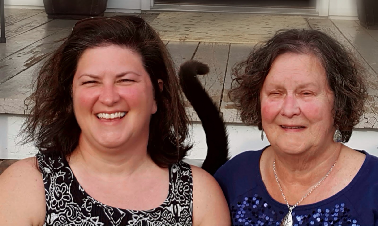 Every time I find myself running into the same situation. I can find lots of pics of family, friends, events, food, etc. but very few of me and my subject as I am the unofficial family photographer. I put the above collage together of me and my Mom, Marguerite as a keepsake. We had a lot of fun taking a few pictures yesterday. Every time my sister tried to take one; her dog Pumpkin or one of the cats, or should I say, their tail, had to find a way to join in the picture.