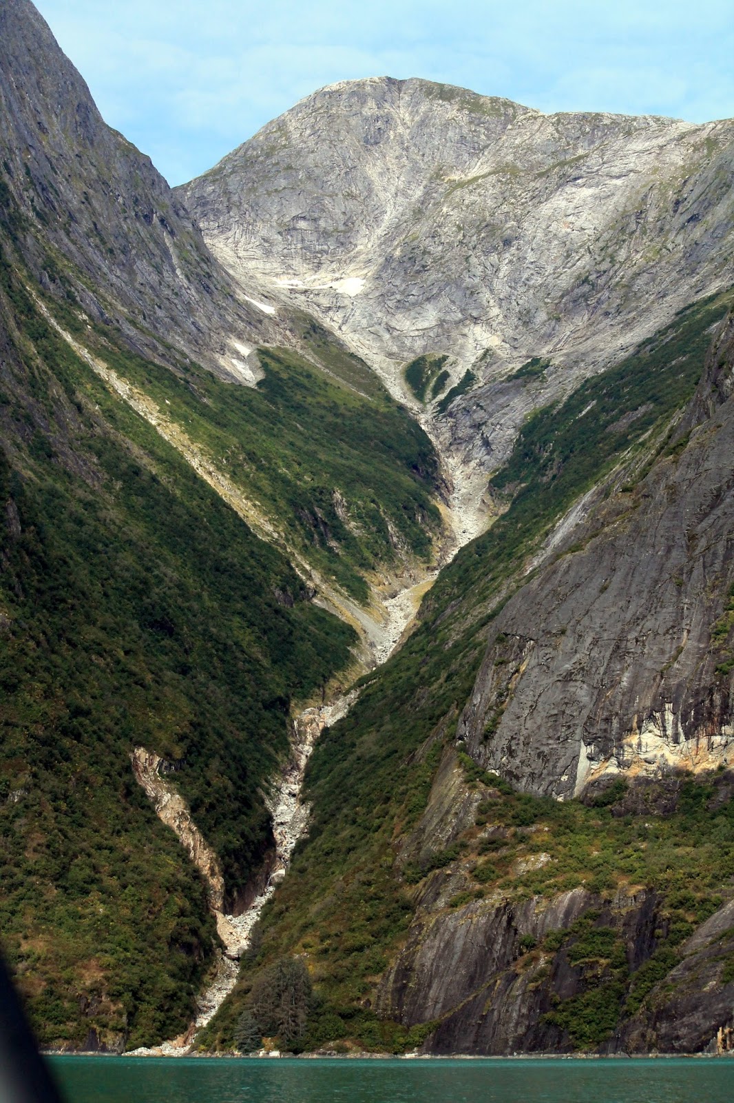 On our trip to enjoy the Tracy Arm Fjords, our captain Adam Underwood fished out a huge chunk of glacier ice. After we released it back to the water, I wished we had saved it to break up for our toddies that night. The water, as we got closer to the glacier, was the most beautiful emerald green or aqua blue depending on how the sun was hitting it. Captain Adam said we were in waters 1000+ feet deep.