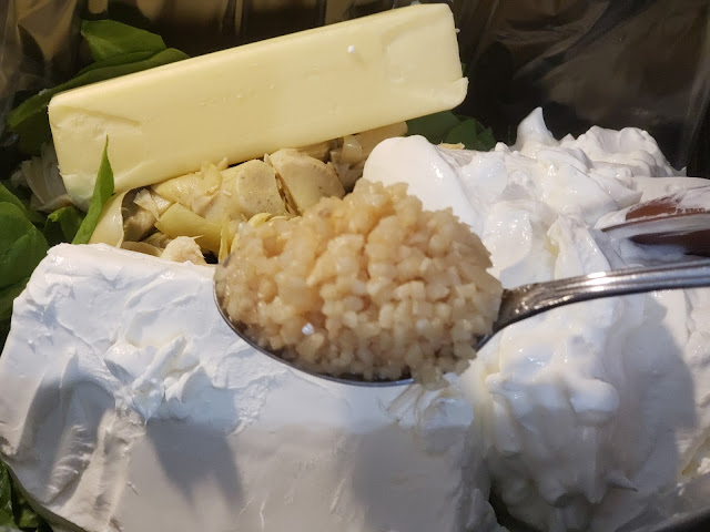 When the Super Bowl rolls around, we have an appetizer extravaganza! Do we care about professional football? No. It's just the perfect excuse to load up on the goodies we like to nosh on. I have fixed several variations of spinach and artichoke dip but this one is the game-winning touch down!